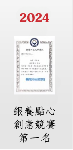 | 113年 | 6月 | 「113年銀養點心創意競賽」,榮獲一般組第一名。 |