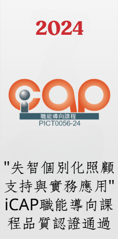 | 10月 | 通過勞動部勞動力發展署iCAP職能導向課程品質認證-失智個別化照顧支持與實務應用。 | |