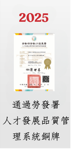 | 114年 | 4月 | 通過勞動力發展署人才發展品質管理系統評核銅牌 |